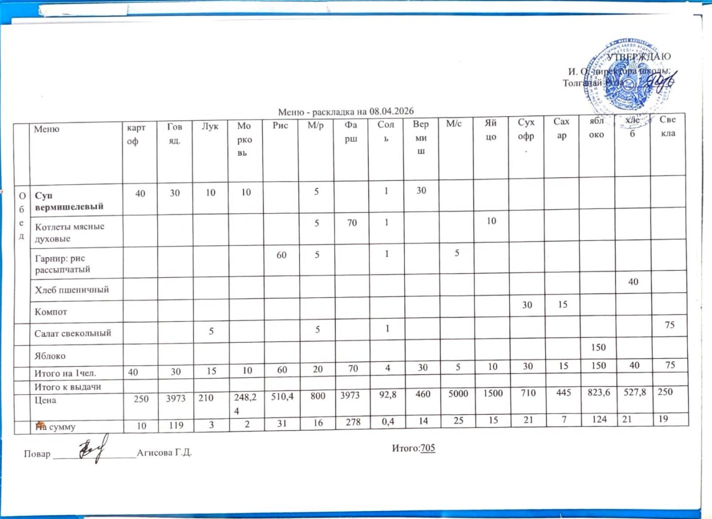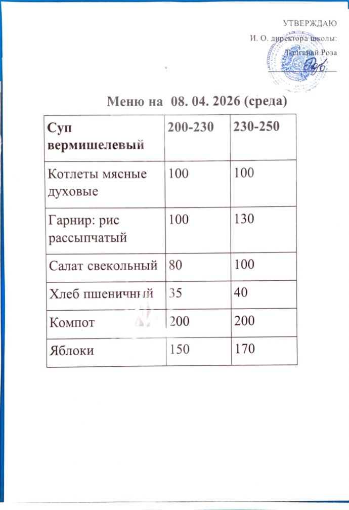 Күнтізбелік мәзір 08.04