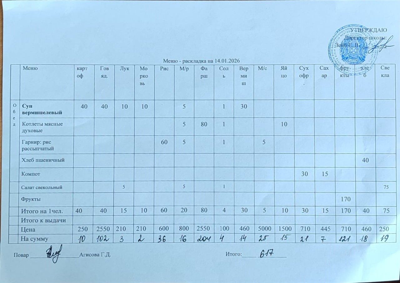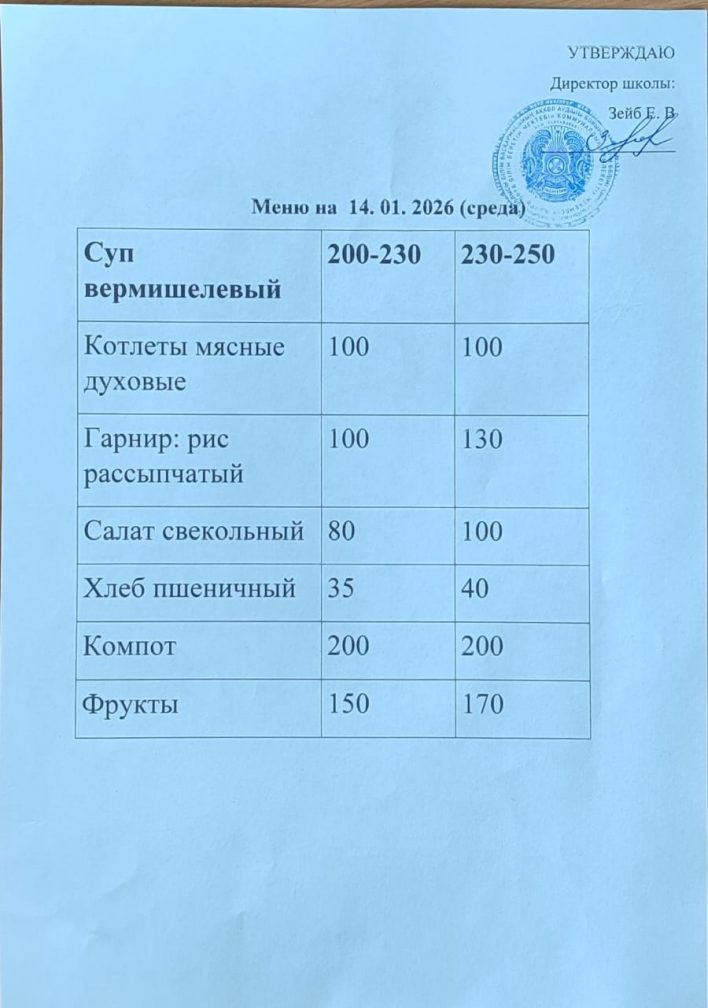 Күнтізбелік мәзір 14.01