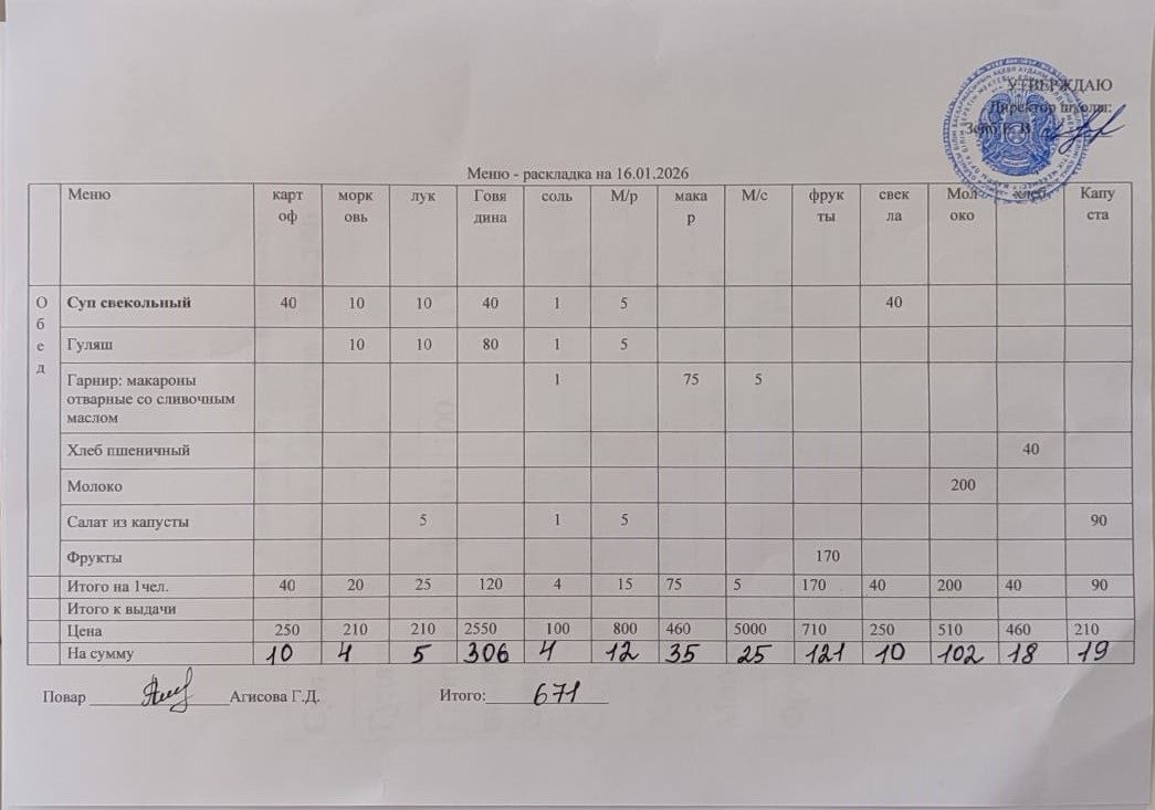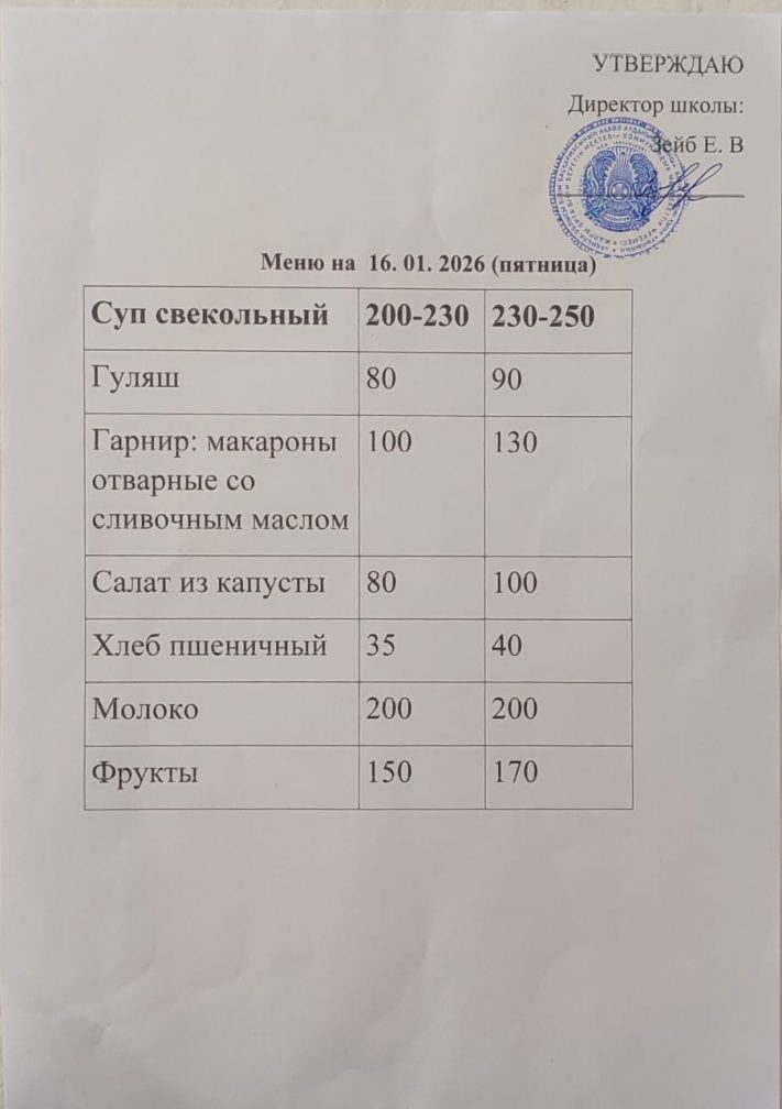 Күнтізбелік мәзір 16.01