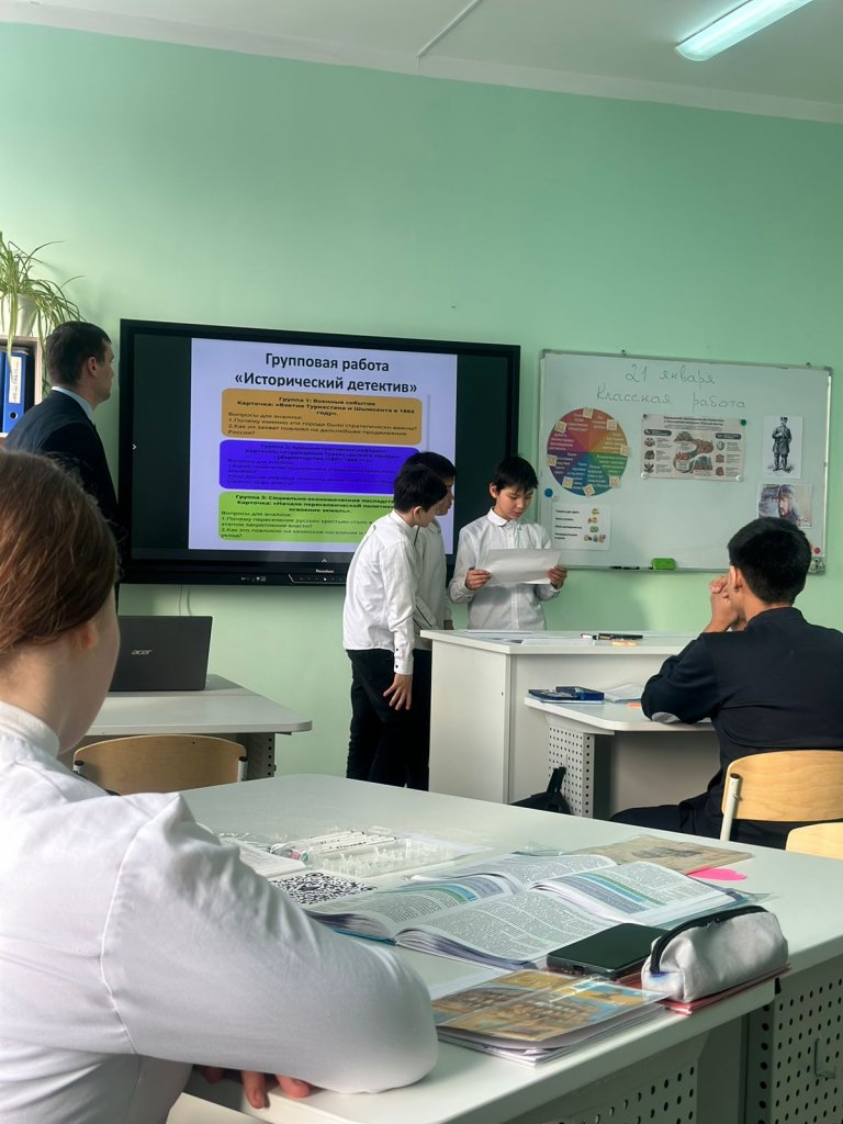 Бүгін 7 «Б» сыныбында «Қазақстанның Ресей империясына қосылуының аяқталуы» тақырыбында Қазақстан тарихы пәнінен сабақ өткізілді. Сабақ барысында оқушылар аталған тарихи кезеңнің негізгі оқиғаларын, қосылудың себептері мен салдарын, сондай-ақ оның Қазақстанның әлеуметтік-саяси және экономикалық дамуына тигізген әсерін қарастырды.