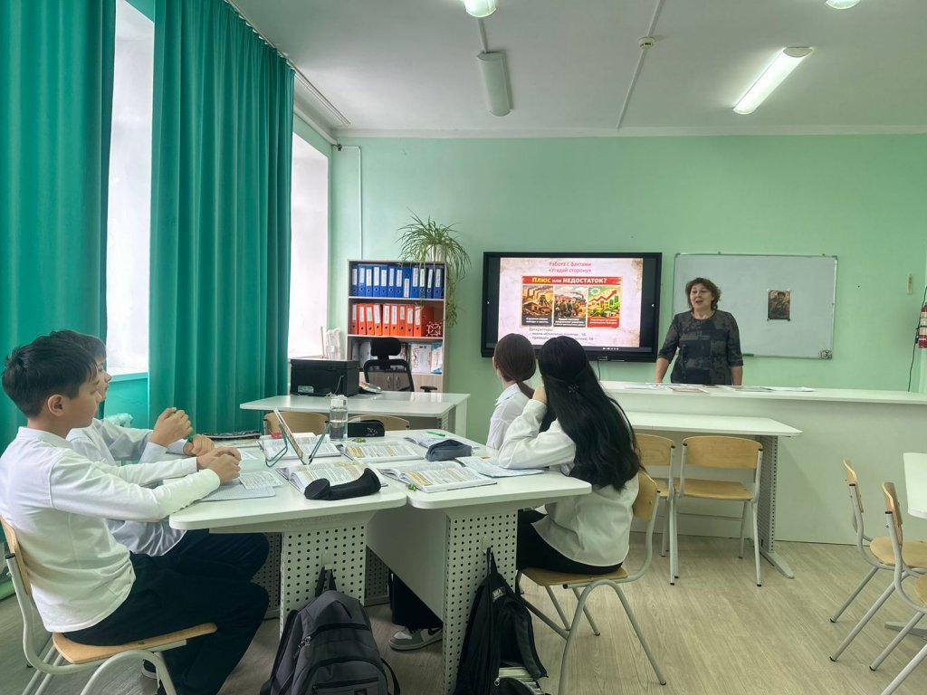 Сабақ барысында оқушылар әртүрлі форматта жұмыс жасады: жеке, жұппен және топпен. Сабақтың басында білімді өзектендіру жүргізілді. Сабақ барысында оқушылар индустрияландырудың оң және теріс салдарын анықтап, ситуациялық тапсырманы талдап, оны шешу жолдарын ұсынды.