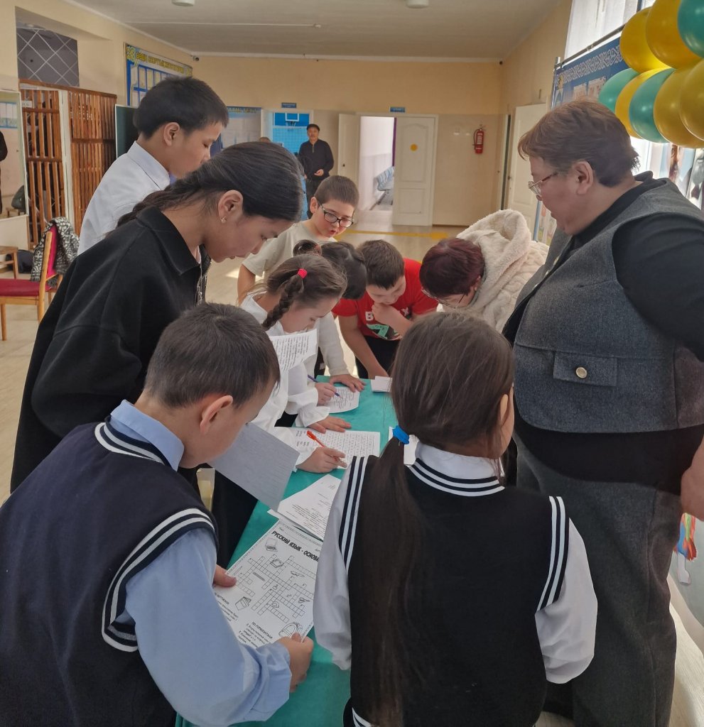 Бүгін мектебімізде орыс тілі онкүндігі аясында «Қызықты үзіліс» шарасы өтті. Оқушылар бұл шараға белсене қатысты: күрделі ребустардың шешімін тауып, шарадаларды шешті және карточкадағы шығармашылық тапсырмаларды орындады.