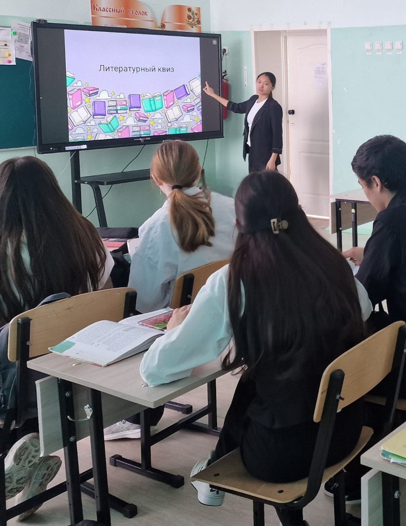 «Бүгін 9 «Б» сыныбында орыс тілі онкүндігі аясында «Орыс әдебиетінің алтын ғасыры» атты викторина өтті. Оқушылар тамаша білім деңгейін көрсетті: сұрақтарға белсене жауап беріп, жауап нұсқалары төңірегінде пікірталас жүргізді және 8-сыныпта оқыған шығармаларын еске түсірді».