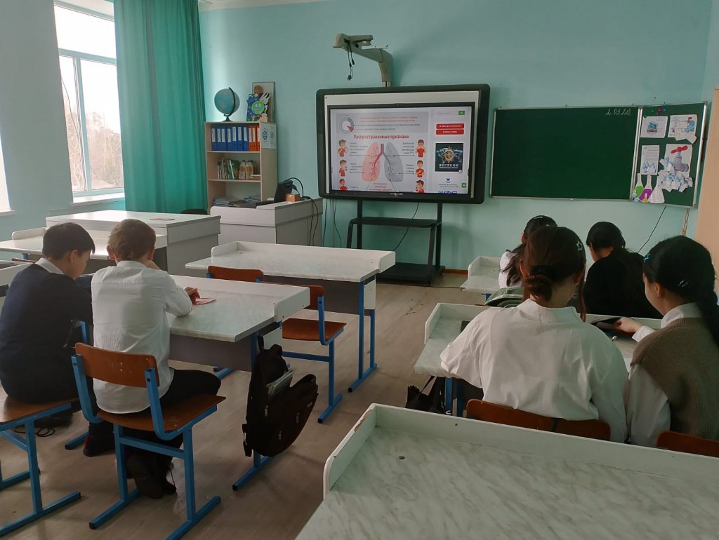 Мақсаты: Оқушылардың туберкулез, оның таралу жолдары, алдын алу шаралары туралы түсініктерін қалыптастыру; және өз денсаулығына жауапкершілікпен қарауға тәрбиелеу. Сынып сағатында оқушылар бейнеролик көріп, туберкулездің алдын алу бойынша негізгі нұсқаулармен танысып, кластер құрады.