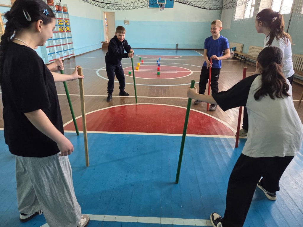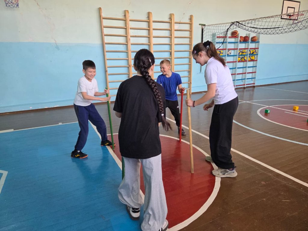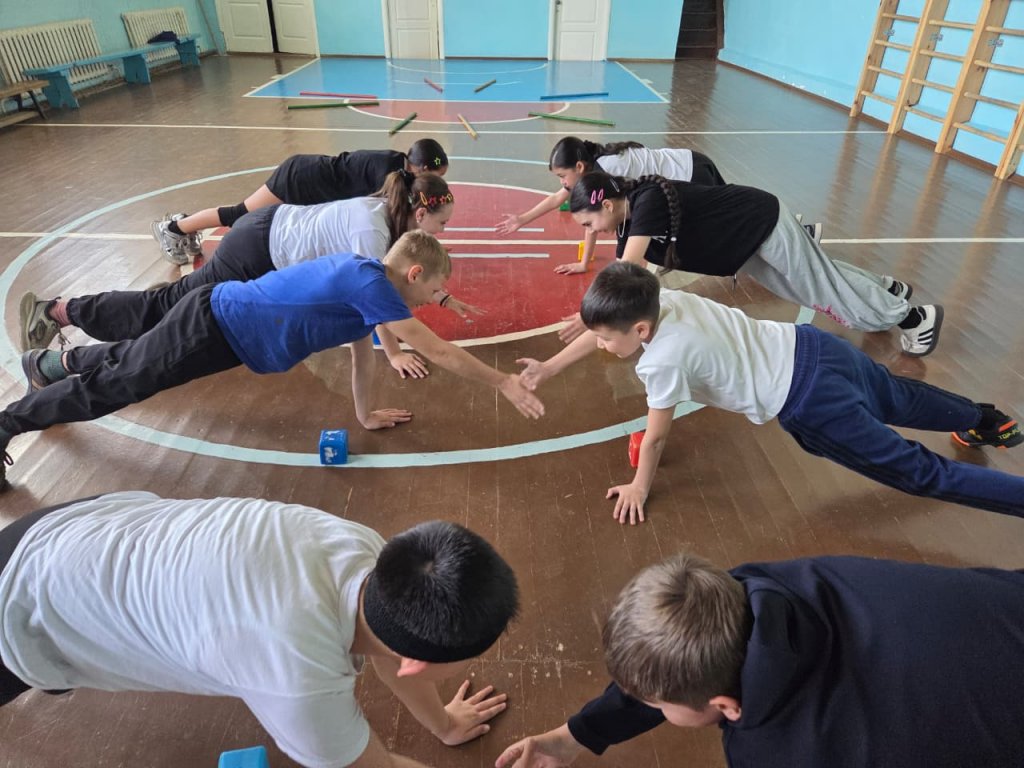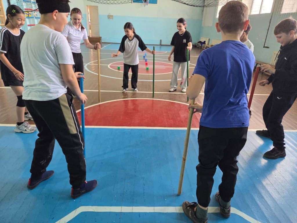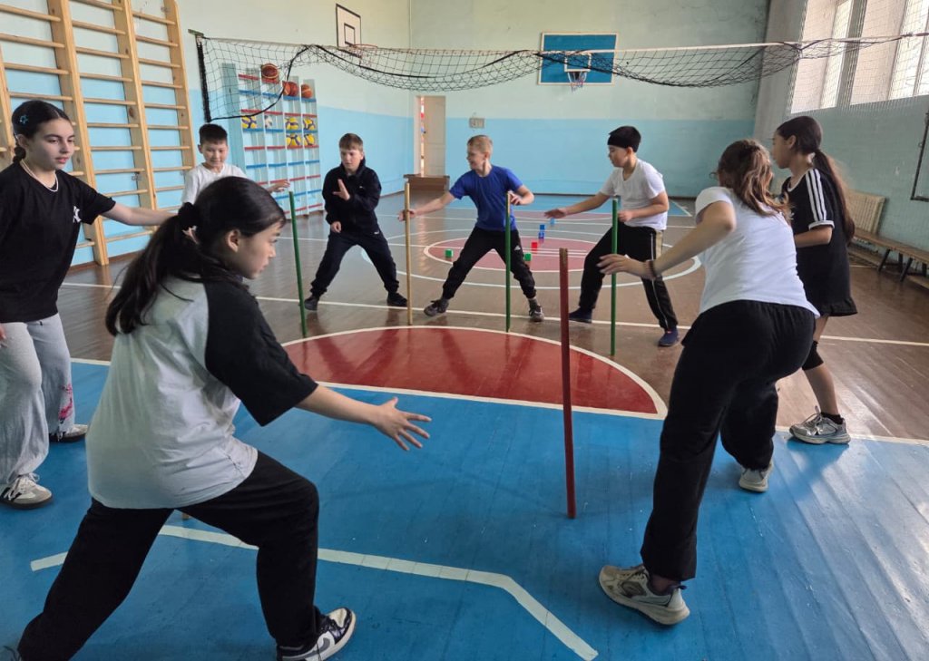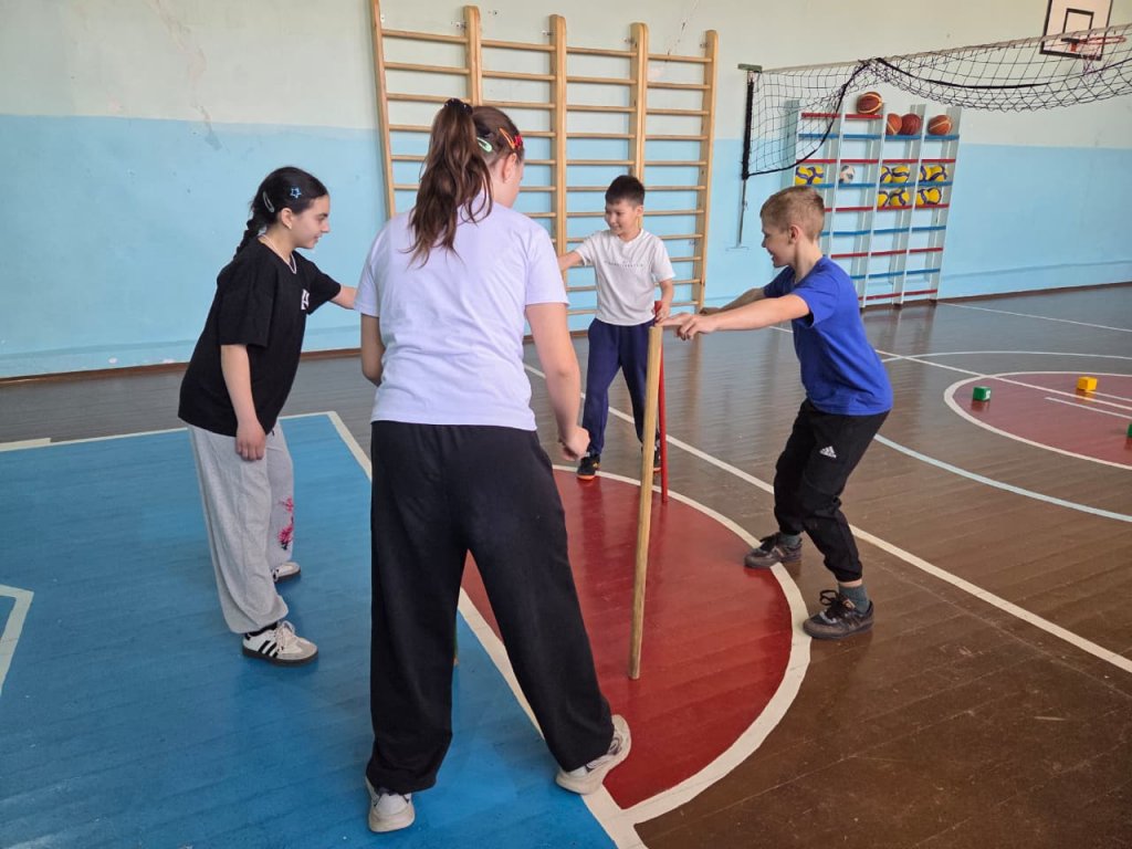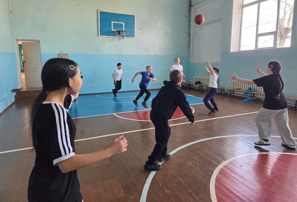 6 сәуір күні 5–6 «Б» сыныбында дене шынықтыру сабағында ойын кеңістігінде бағдарлану дағдыларын қалыптастыру мақсатында оқушылар күшті, үйлесімділікті және ептілікті дамытуға арналған тапсырмаларды орындады. Үйренген дағдыларын қозғалмалы ойындарда, соның ішінде баскетбол ойынында қолданды.