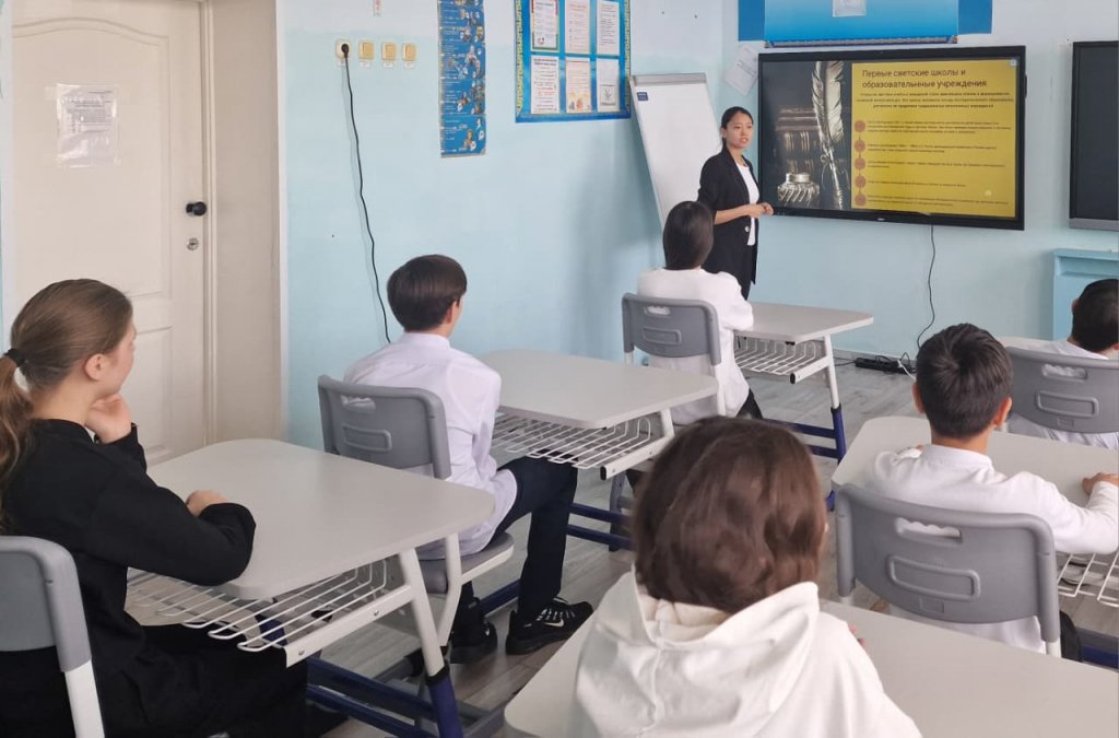 Оқушылар қазақ зиялыларының тарихы мен танысып, ұлы ағартушылардың ұлттық сана-сезімді қалай қалыптастырғаны, ғылым мен мәдениетті қалай дамытқаны туралы білді. А. Құнанбаев, А. Байтұрсынов, С. Сейфуллин, М. Жұмабаев, М. Дулатов және басқа да көптеген көрнекті қайраткерлердің мұрасына ерекше назар аударылды. Жастардың рухани қалыптасуындағы әдебиеттің рөлі мен негізгі шығармалар талқыланды.